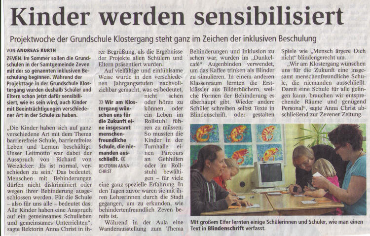 Am 1.6. stand folgender Artikel in der Zevener Zeitung: