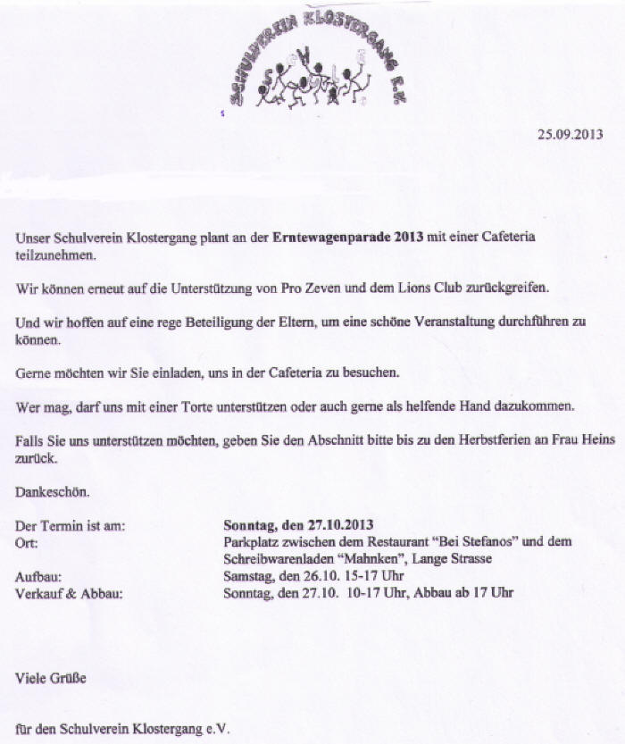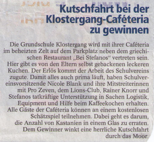 Am 23.10.2013 stand im Zevener Vereinsblatt folgender Beitrag: